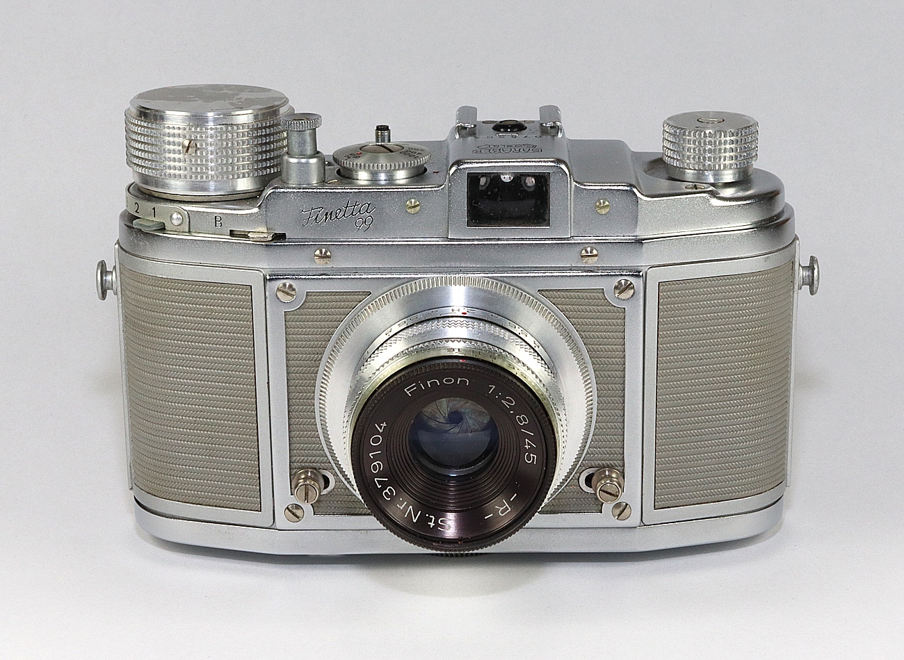 Ein Vorserienmodell aus dem Nachlass der Goslarer Unternehmer-Familie Sarabèr (Finetta-Werke). Das Zeitenrad ist hier interessanterweise nicht zylindrisch ausgeführt wie sonst, sondern dachförmig abgeflacht. Der Schriftzug „Finetta 99“ befindet sich vorne neben dem Sucher. Auf der Deckkappe über dem Sucher, wo normalerweise die Nummer eingraviert ist, findet sich zusätzlich noch ein Firmenlogo, das später in der Serie nicht mehr verwendet wurde.