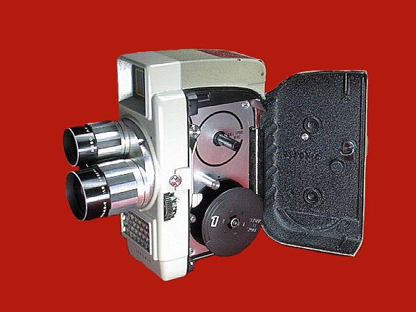 Schwere Schmalfilmkamera für Doppel-8-Spulen, hergestellt in Japan Anfang der 1960er Jahre. Objektivrevolver, bestückt mit: Normalobjektiv Resonar 1:1,9/13 mm, Weitwinkelobjektiv Resonar-W 1:1,9/9 mm sowie Tele Resonar-T 1:1,9/32 mm; Fixfokus. Fernrohrsucher mit farbigen Rahmen, entsprechend den verschiedenen Brennweiten, und mit optischem Parallaxenausgleich am Sucherokular. Federwerksantrieb (Einzelbild; 12, 16, 24 und 32 Bilder pro Sekunde); manuelle Belichtungssteuerung (Nachführmessung; Belichtungsmesser mit Selen-Zelle unter den Objektiven, Zeiger eingespiegelt im Sucher; Filmempfindlichkeit: 11 bis 17 DIN). Eingebaute Filter, Stativgewinde, Tiefenschärfenskala in Deutsch oben auf Sucher.