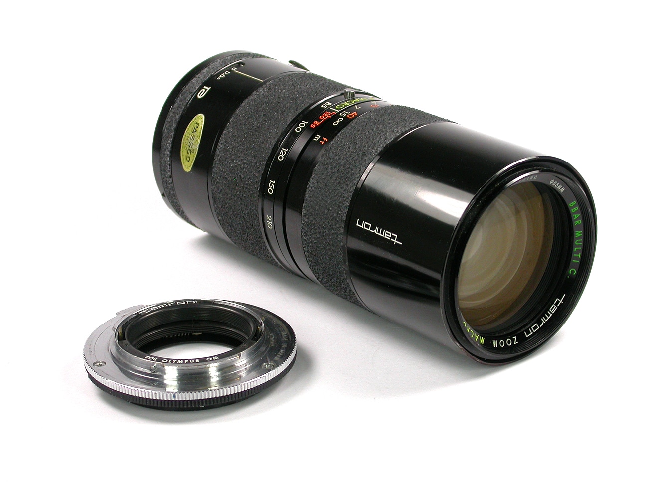 Ein Telezoom aus der Tamron-Serie für das Adapt-All-System (Mitte der 1970er Jahre). Die kürzeste Entfernungseinstellung beträgt 200 Zentimeter, es hat eine Makro-Funktion, die kleinste Blende ist 22, es wiegt etwa 700 Gramm. Das Objektiv hat zwölf Linsen in neun Gruppen, sie sind mehrfach vergütet, hier klangvoll bezeichnet als „Breitband-Antireflexvergütung“ (Tamrons Bezeichnung hierzu auf dem Filterring: „BBAR MULTI C“: BRoadBand Anti Reflective).
