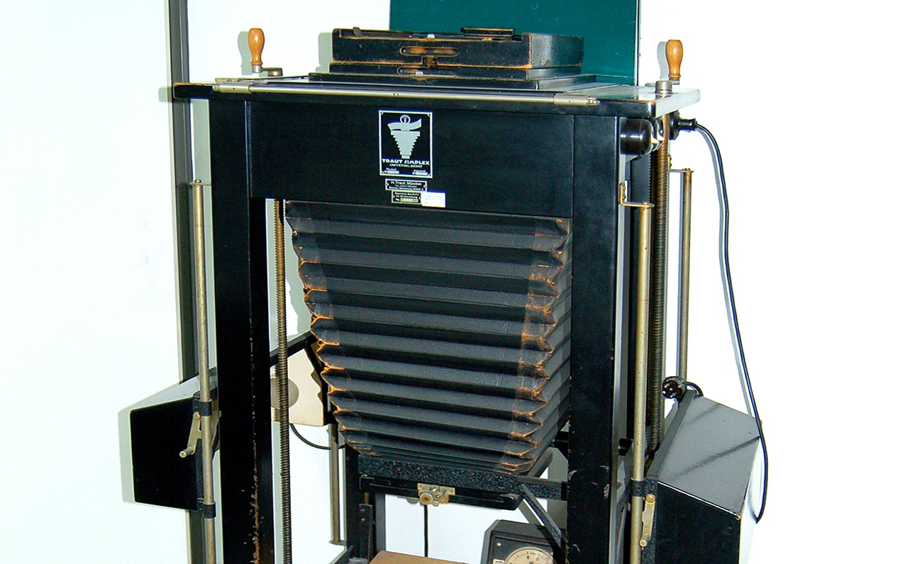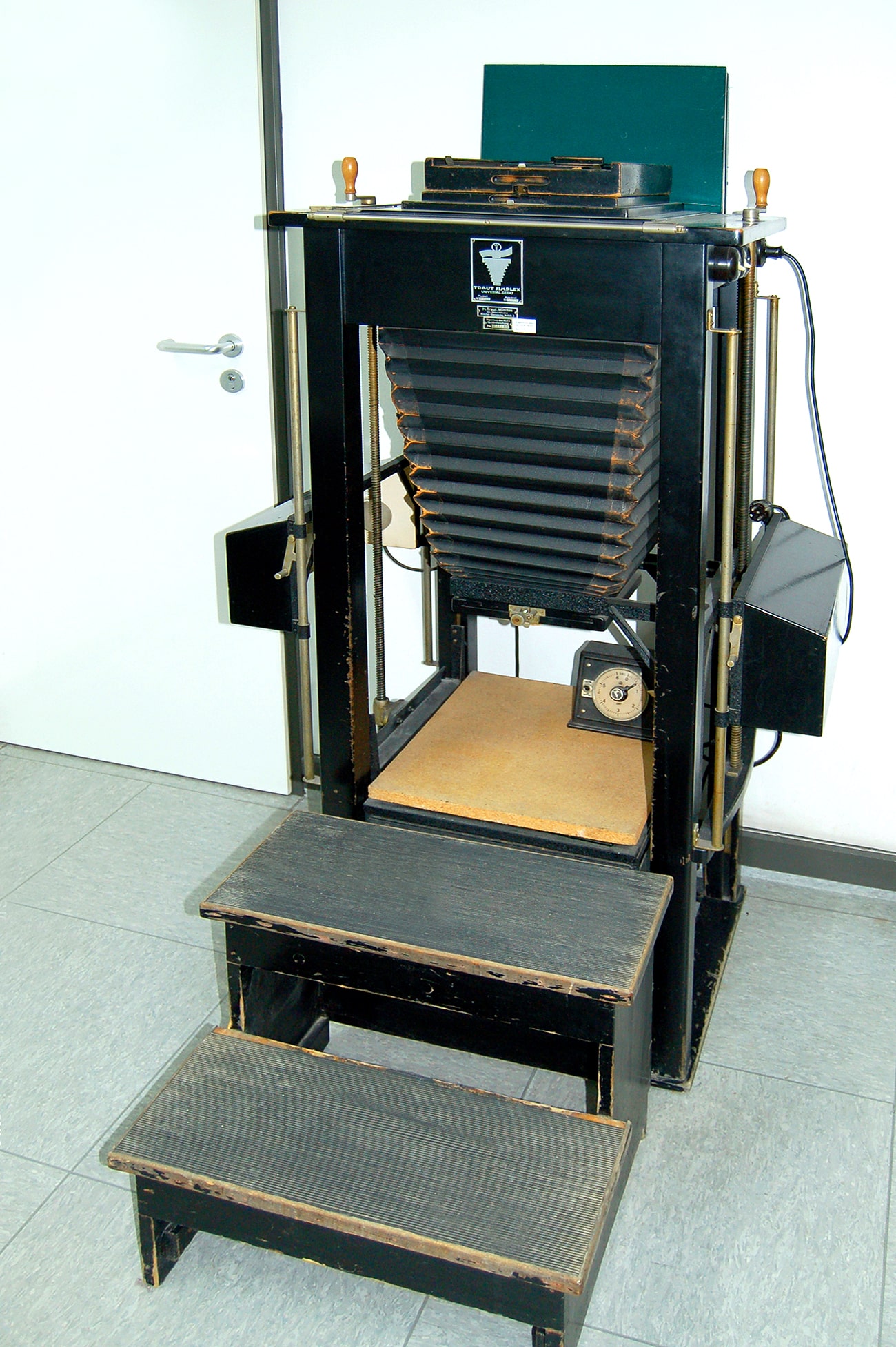 Eine Großbildkamera „mit Spezialauftrag“: die Traut Simplex von der Münchener Firma H. Traut (Inhaber: Viktor Hölscher). Das Gerät – etwa 150 cm hoch, 90 cm breit und 65 cm tief – , stand bis Anfang 2009 im Max-Planck-Institut für neurologische Forschung in Köln. Benutzt wurde es viele Jahrzehnte lang, um Hirnschnitte auf großformatigen Glasnegativplatten zu fotografieren.