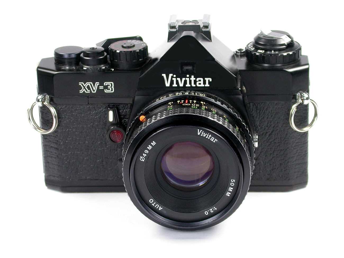 Kompakte Einäugige Spiegelreflexkamera (SLR) für den Kleinbildfilm 135 (Aufnahmeformat 24 x 36 mm), hergestellt in Japan ab 1980; die Vivitar XV-3 ist baugleich mit der Cosina CT-4. Für Wechselobjektive mit PK-Bajonett, hier mit dem Normalobjektiv Vivitar Auto 1:2,0/50 mm. Sucher mit fest eingebautem Pentaprisma; Mattscheibe mit Fresnellinse, Mikroprismenring und zentralem Schnittbild-lndikator. Sucheranzeigen: Belichtungszeiten, Über- und Unterbelichtungs-Warnanzeige. Elektronisch gesteuerter, vertikal ablaufender Seiko-Metallschlitzverschluss (B, 8 Sekunden bis 1/1.000 Sekunde sowie X = 1/100 Sekunde; elektronisch gesteuerter Selbstauslöser). TTL-Belichtungsmessung bei Offenblende mit zwei Siliziumzellen (integral mit Mittenbetonung); automatische Belichtungssteuerung bei Blendenvorwahl mit stufenloser Bildung der Verschlusszeiten. Manueller Filmtransport über Schnellschalthebel. Abnehmbare Rückwand mit Memo-Halter für Filmpackungslasche und Umrechnungstabelle DIN/ASA. Anschluss für Autowinder XV-3.Energieversorgung: zwei Batterien 1,5 Volt (Eveready Ucar S-76 oder gleichwertige).