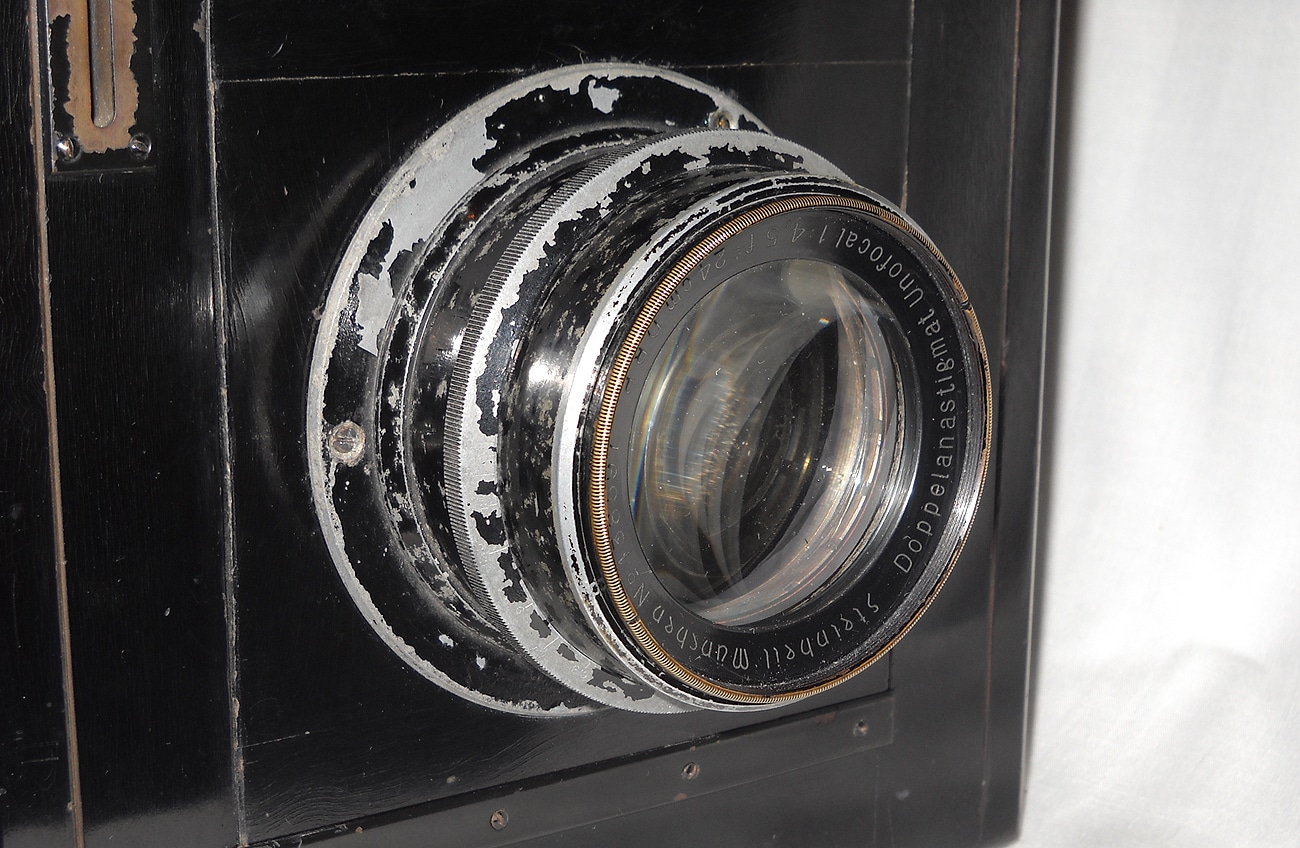 Eine der frühen Spiegelreflexkameras von Voigtländer, noch namenlos – ähnlich der späteren Vida. Laut Kerkmann („Deutsche Kameras 1900 bis 1945“) kam dieser Apparat (siehe Abbildung aus dem Kerkmann-Katalog) 1908 auf den Markt („nach Angabe des Freih. von Liliencron gebaut“). Die Museumskamera hat einen Schlitzverschluss mit zwei Zeiten: Z (Zeit) und M (Moment). Der Hebel in der Mitte der rechten Gehäuseseite ist der Auslöser, der auch den Spiegel nach oben aus dem Strahlengang schwenkt. Das Objektiv am Museumsexemplar ist ein Steinheil mit 24 cm Brennweite.