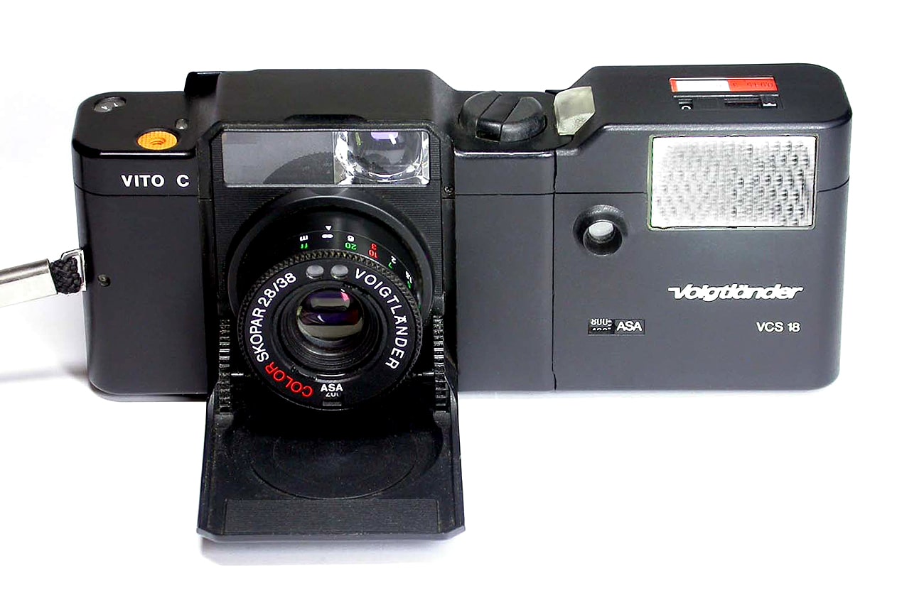 Eine kompakte Kamera im Stil der Minox-35-Modelle für den Kleinbildfilm 135 (Negativformat 24 x 36 mm), hergestellt von 1981 bis 1988. Objektiv: Color Skopar 1:2,8/38 mm, vollautomatischer Programmverschluss 16 bis 1/500 Sekunde. Deutlich zu sehen: die „Minox-Klappe“. Die Kamera – hier mit angestecktem Voigtländer-Blitz VCS 18 (Computerblitz mit Leitzahl 18) – wurde von Balda in Bünde gebaut, später auch unter dem Markennamen Balda.