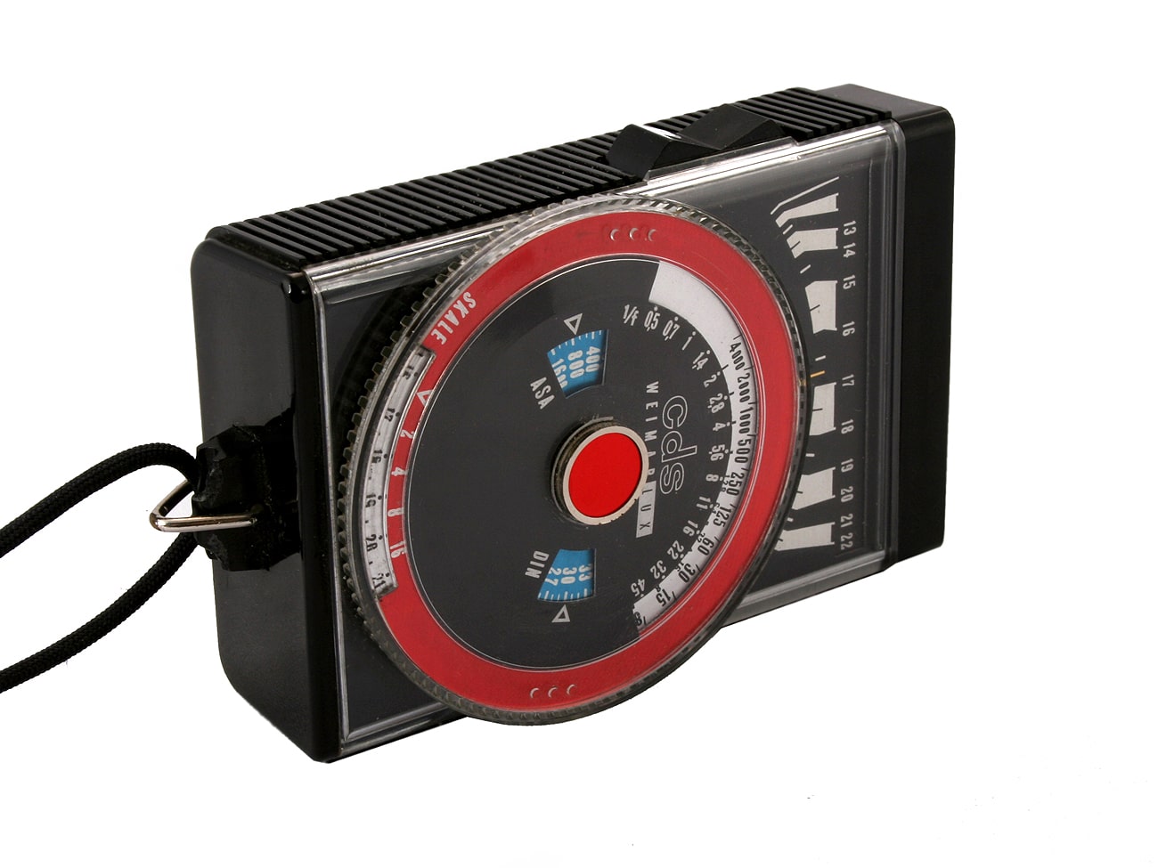 Fotoelektrischer Belichtungsmesser (CdS), ab 1970 hergestellt in der früheren DDR vom VEB Uhrenwerk Weimar (Feingerätewerk). Blendenwerte 0,5 bis 45; Belichtungszeiten bis 1/4.000 Sekunde. Stromversorgung: 1 x Knopfzelle 1,35 Volt.