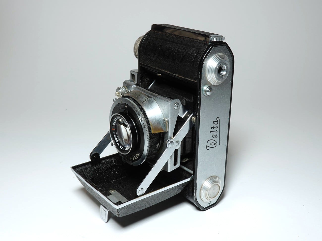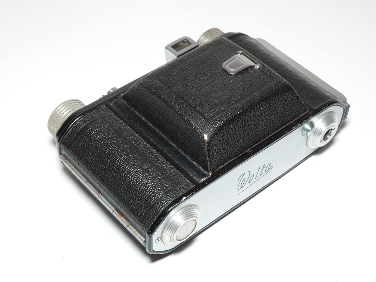 Klapp-/Spreizenkamera für den Kleinbildfilm 135 (Aufnahmeformat 24 x 36 mm) der Welta-Kamera-Werke, Freital, Sachsen, ähnlich der Welta Watson 35 von 1938 und der Welti Ic von 1954. Objektiv: Carl Zeiss Jena Tessar 1:2,8/50 mm, vergütet, Seriennummer 3315679; manuelle Fokussierung mittels Schneckengang. Fernrohrsucher mit manuellem Parallaxenausgleich. Mechanischer Zentralverschluss Compur-Rapid (B, 1 bis 1/500 Sekunde); manuelle Belichtungssteuerung. Gehäuseauslöser, Zählwerk; Tiefenschärfentabelle auf der Rückseite. Blitzsynchronkontakt; Stativgewinde.