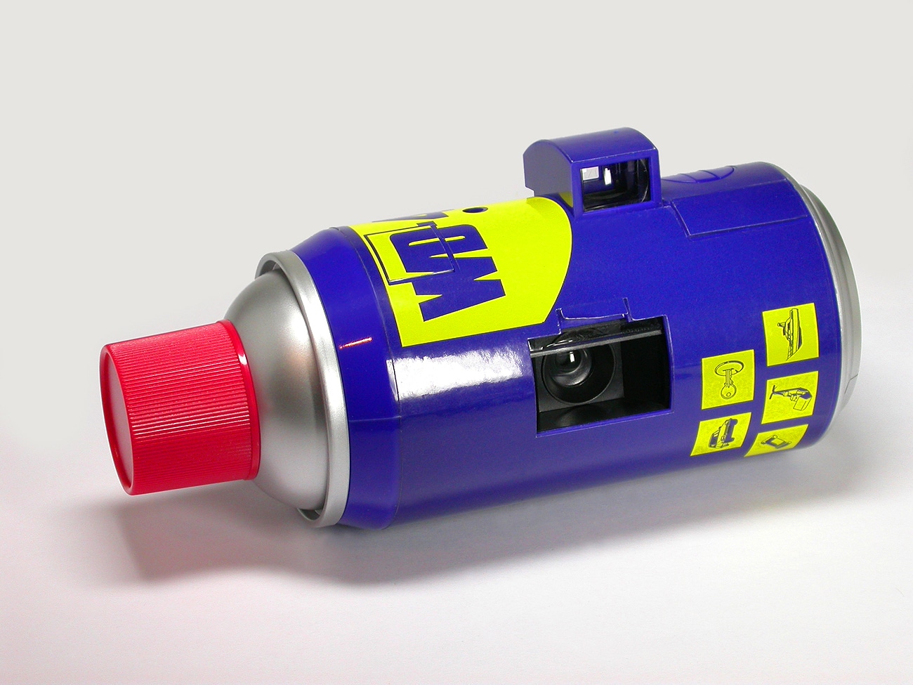 Das Multifunktionsöl WD-40 ist bei Autofahrern und Hausfrauen gleichermaßen bekannt und beliebt. Schließlich „beseitigt es Quietschen, verdrängt Feuchtigkeit, reinigt und schützt, lockert verrostete Teile, löst festsitzende Mechanik“ – jedenfalls steht das auf der Schachtel. Alles Eigenschaften, die einem Fotografen auch helfen können… Diese WD-40-Spraydose kann noch mehr: Sie kann fotografieren!