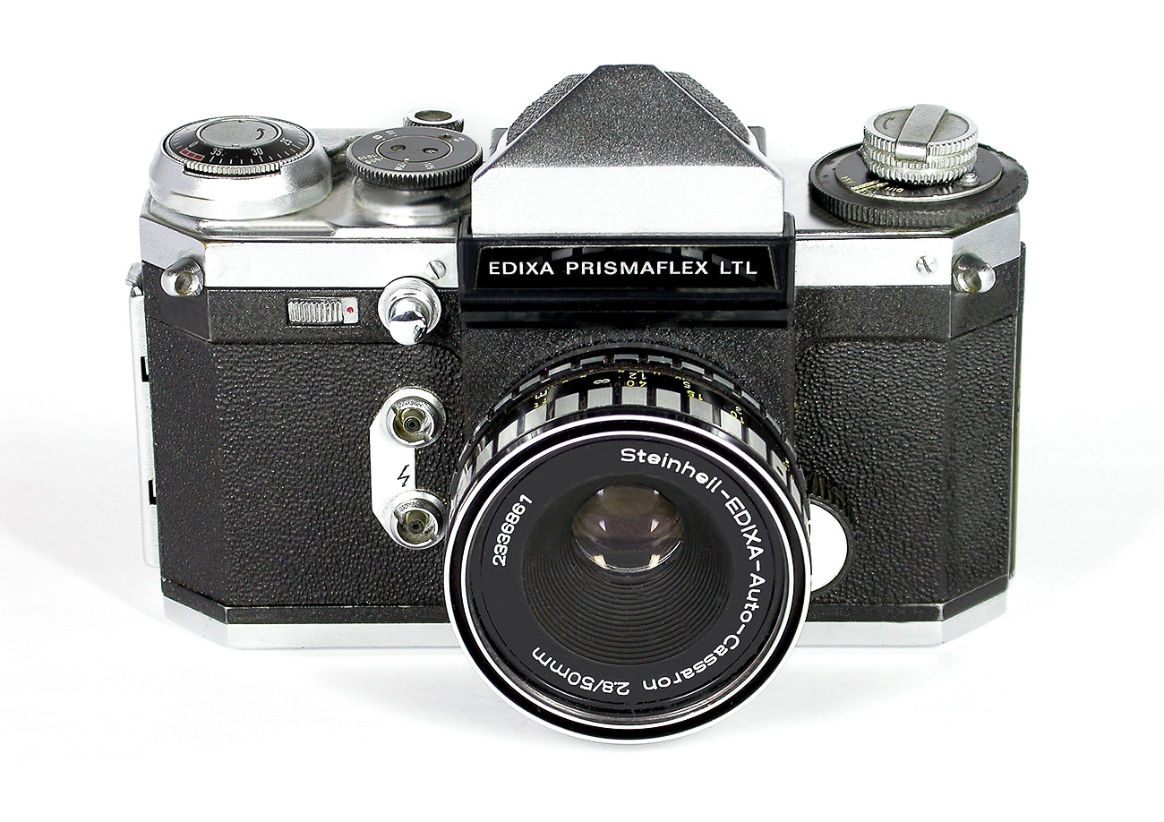 Einäugige Spiegelreflexkamera, hergestellt ab 1968, für den Kleinbildfilm 135 (Aufnahmeformat 24 x 36 mm). Manualfokus, Prismensucher, mechanischer Schlitzverschluss (schnellste Verschlusszeit 1/1.000 Sekunde), manuelle Belichtungssteuerung (Integralmessung), Wechselobjektive (M 42), hier mit Steinheil-Edixa-Auto-Cassaron 1:2,8/50 mm (Seriennummer 2336861).