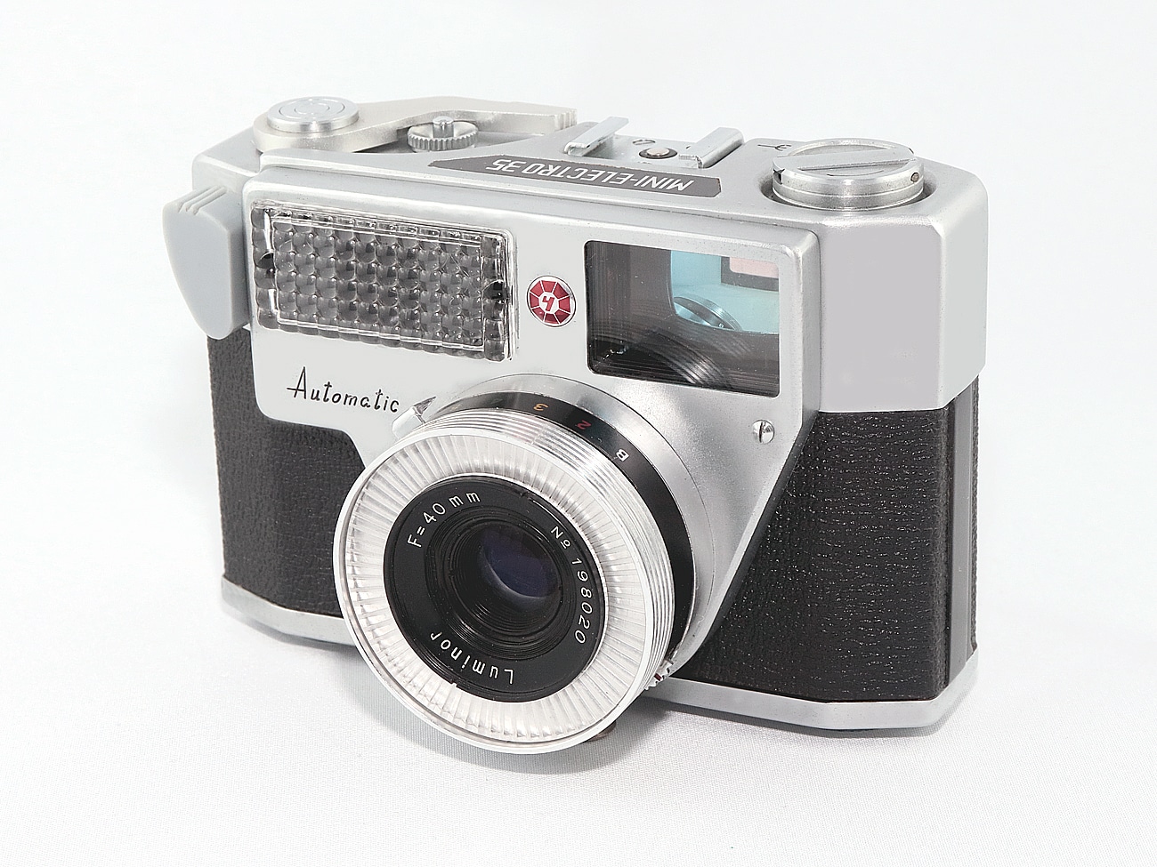 Japanische Kleinbild-Sucherkamera (1961) von Yamato Koki Kogyo Co. (Negativformat: 24 x 36 mm). Die richtige Belichtung wird entsprechend der Filmempfindlichkeit eingestellt, die Zahlen 2 bis 6 auf dem Objektivtubus entsprechen ASA 10 bis 200. „2“ dürfte etwa 1/25 bis 1/30 Sekunde entsprechen, da es sich auch um die Geschwindigkeit zur Synchronisierung mit Blitzlampen handelt. Es gibt auf der Rückwand eine Tabelle mit den Filmempfindlichkeiten der damals gebräuchlichsten Filme, wonach man wiederum die richtige Belichtung anhand der Zahlen am Objektivtubus einstellen konnte. Das Objektiv Luminor mit 40 mm Brennweite hat die Seriennummer 198020.