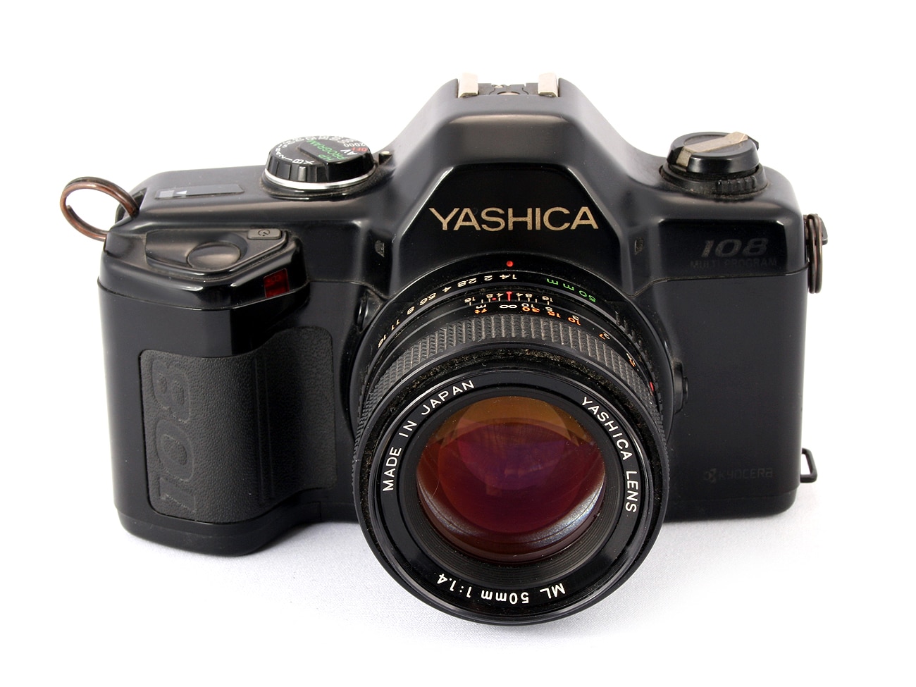 Einäugige Spiegelreflexkamera, 1990, für den Kleinbildfilm 135 (Aufnahmeformat 24 x 36 mm). Manuelle Scharfstellung, Prismensucher mit Schnittbild-Entfernungsanzeige und Mikroprismenring sowie LEDs für Programm, manuellen Modus, Blitzstatus und Batteriestand. Elektronischer Schlitzverschluss: B, im Automatikmodus 16 Sekunden bis 1/2.000 Sekunde, wahlweise mit Kurzzeitpriorität, Zeitautomatik mit Blendenvorwahl, im manuellen Modus 1 bis 1/2.000 Sekunde, Blitzsynchronisation bis 1/90 Sekunde, Selbstauslöser mit 10 Sekunden Vorlaufzeit. Mittenbetonte Belichtungsmessung, DX-Kodierung ISO 25 bis ISO 3.200, Belichtungskorrekturtaste + 1,5 EV. Manuelle Belichtungssteuerung, Zeit- und Programmautomatik. Bis zu 1,3 Bilder pro Sekunde mit eingebautem Winder, Filmrückspulung manuell. Objektiv: Contax-/Yashica-MM-Bajonett, hier mit Yashica Lens ML 1:1,4/50 mm. Datenrückwand DA-2 ansetzbar. Stromquelle: 4 x 1,5 Volt Mikrobatterien (Typ AAA).