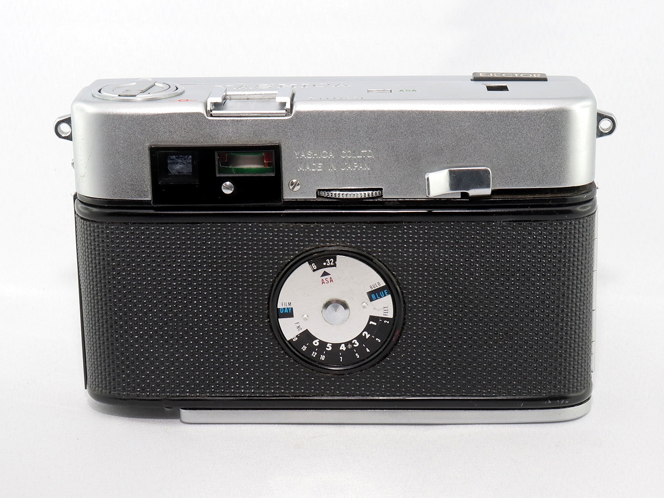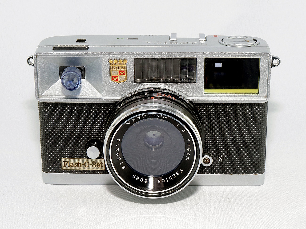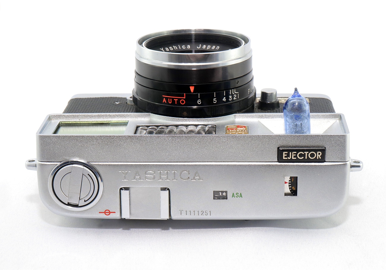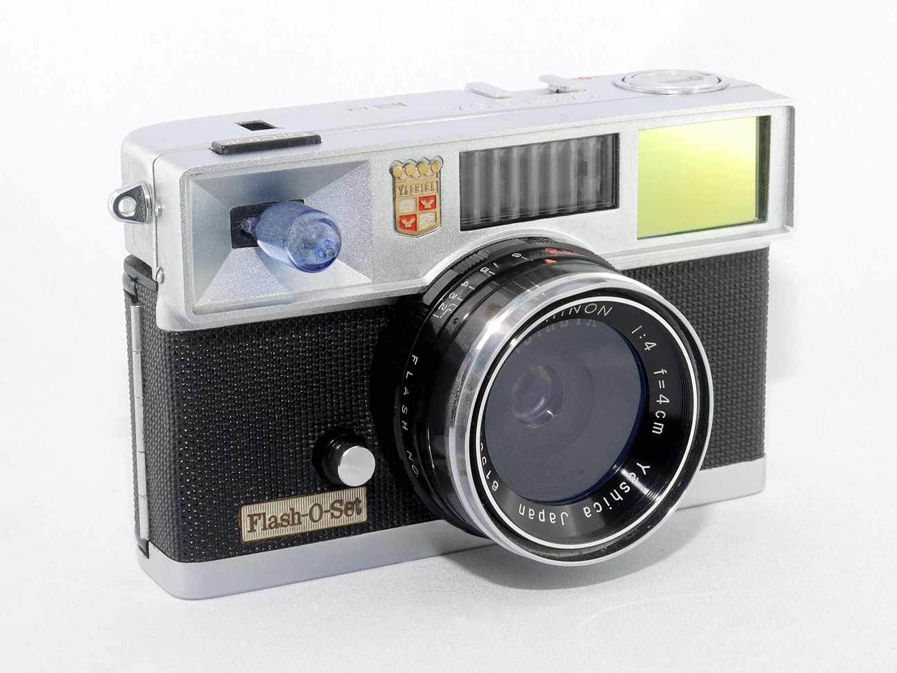 Schwergewichtige Kleinbild-Sucherkamera (1961) aus Japan mit ungewöhnlicher Technik: einem eingebauten Birnchenblitz (AG-1-Lampenfassung). Kleinbildfilm 135 (Aufnahmeformat 24 x 36 mm), mechanischer Zentralverschluss mit 1/60 Sekunde, Integralmessung, Selenzellengesteuerte Belichtungsautomatik, Blitzsynchronisation PC-Buchse, Schnellschalthebel, Filmrückspulung per Kurbel, Bildzählwerk, Stativgewinde, Trageösen. Fixfokus-Objektiv: Yashica Yashinon 1:4,0/40 mm (Seriennummer: 6150218). Stromversorgung: 1 x 15-Volt-Batterie (Typ Y-10) zum Zünden des Blitzbirnchens.