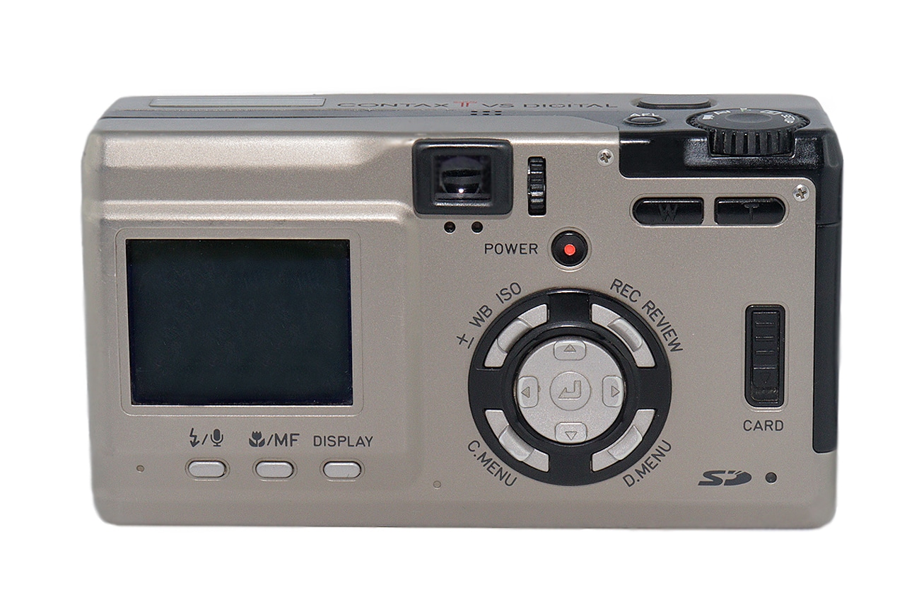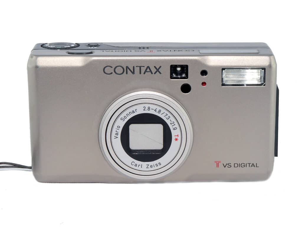Sie war die erste kompakte Digitalkamera mit dem legendären Namen Contax (2003), eine hochwertige Kamera mit Titangehäuse und Zeiss-Zoom-Objektiv. Die Daten in Kurzform: 1/1,8 Zoll CCD-Sensor mit 5 Megapixeln, Cropfaktor: 4,8, Bildauflösung: 2.560 x 1.920 Bildpunkte, JPG. Objektiv: Carl Zeiss Vario Sonnar 1:2,6-4,8/7,3-21,9 mm (das entspricht einer Brennweite von 35 bis 105 mm im Kleinbildformat). Autofokus, dreifaches optisches und vierfaches digitales Zoom, Verschlusszeiten: 1 bis 1/2.000 Sekunde, ISO: 80 bis 400, Videomodus (AVI) mit Auflösung 320 x 250 Pixel (maximale Aufzeichnungsdauer: zwei Minuten). Integrierter Blitz, optischer Sucher mit Dioptrienausgleich sowie TFT-LCD-Monitor. Speichermedium: SD-Karte. Die Contax T VS Digital wiegt 210 Gramm. Energieversorgung: 1 x Li-Ion-Akku 3,7 Volt/1.500 mAh.