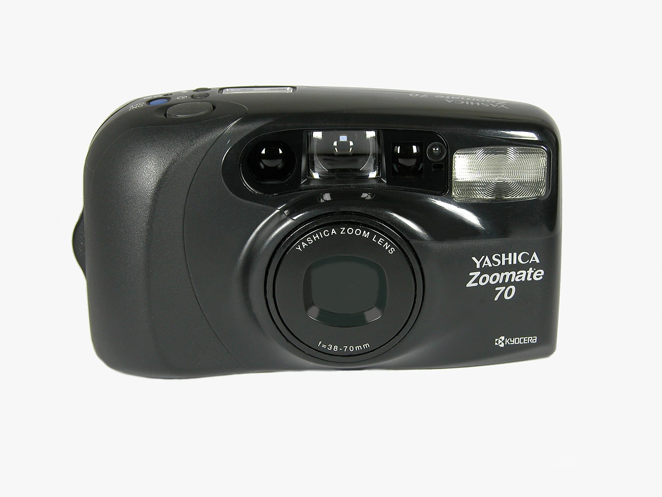 Kompaktkamera von Yashica für Kleinbildfilm 135, Japan, Baujahr 1995, Programmautomatik, Filmempfindlichkeiten ISO 100 bis ISO 800 (DX-Codierung), Infrarot-Autofokus 1 Meter bis unendlich, Leuchtrahmensucher mit AF-Messzonenmarken, eingebauter Blitz, LCD-Anzeige auf der Gehäuse-Oberseite für Blitzmodus und Bildzähler, Winder für Filmtransport und Rückspulung, elektronischer Zentralverschluss 2 Sekunden bis 1/300 Sekunde, Selbstauslöser mit 10 Sekunden Verzögerung, versenkbares Objektiv: Yashica Motor-Zoom 1:5,2-9,1/38-70 mm, Stromversorgung: 2 x Mignonbatterien 1,5 Volt (AA).