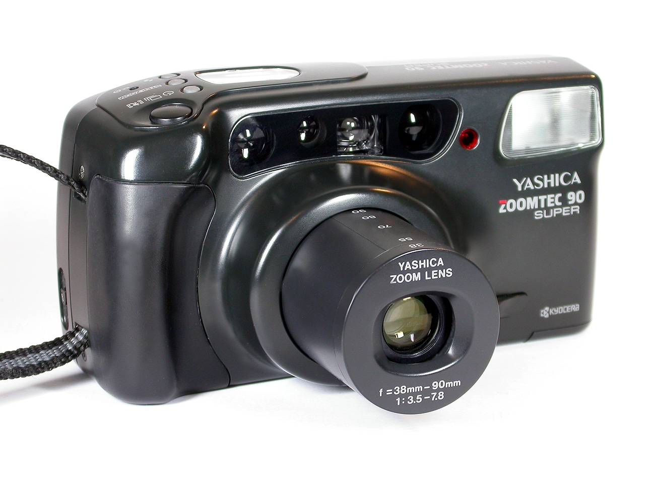 Kompaktkamera von Yashica für Kleinbildfilm 135 (Negativformat: 24 x 36 mm), Japan, Baujahr 1993, Programmautomatik, Filmempfindlichkeiten ISO 50 bis ISO 1.600 (DX-Codierung), Infrarot-Autofokus 0,45 Meter bis unendlich, Messwertspeicher für außermittige Fokussierung, Leuchtrahmensucher mit Parallaxmarken und AF-Messzonenanzeige, eingebauter Blitz, LCD-Anzeige auf der Gehäuse-Oberseite für Aufnahmedaten und Bildzähler, Winder für Filmtransport und Rückspulung, Serienbildfunktion, elektronischer Zentralverschluss 1/4 bis 1/300 Sekunde, Infrarot-Fernauslösung, Selbstauslöser mit 10 Sekunden Verzögerung. Versenkbares Objektiv: Yashica Motor-Zoom 1:3,5-7,8/38-90 mm, Stromversorgung: 1 x 6-Volt-Lithiumbatterie 2 CR 5.
