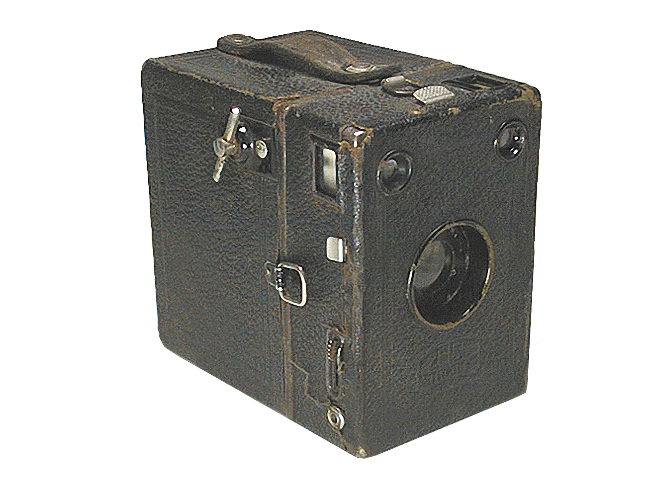 Handliche Box für den Rollfilm 120 (Aufnahmeformat 6 x 9 cm) aus dem Jahre 1931. Objektiv: Goerz Frontar 1:11/110 mm, zwei Spiegelsucher (für Hoch- und Querformat), drei Lochblenden, Einfachverschluss (B, Momentaufnahme), Anschluss für Drahtauslöser, Blechgehäuse mit Belederung.