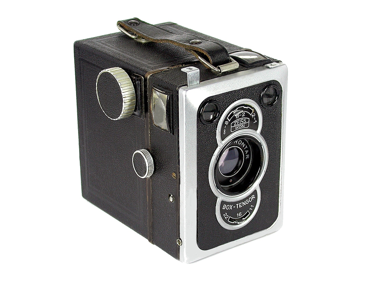 Boxkamera aus dem Jahr 1939 für den Rollfilm 120 (Aufnahmeformat 6 x 9 cm). Objektiv: Goerz Frontar 1:11, einstellbar: drei Entfernungsbereiche, drei Lochblenden. Verschluss: Moment und B, Anschluss für Drahtauslöser. Zwei Brillantsucher sowie zwei Stativgewinde (für Hoch- und Querformat). Die verchromte Einfassung von Objektiv, Blenden- und Entfernungseinstellung sowie die belederten Räder für Filmtransport und Gehäuseverriegelung verleihen der Kamera ein hochwertiges Aussehen.