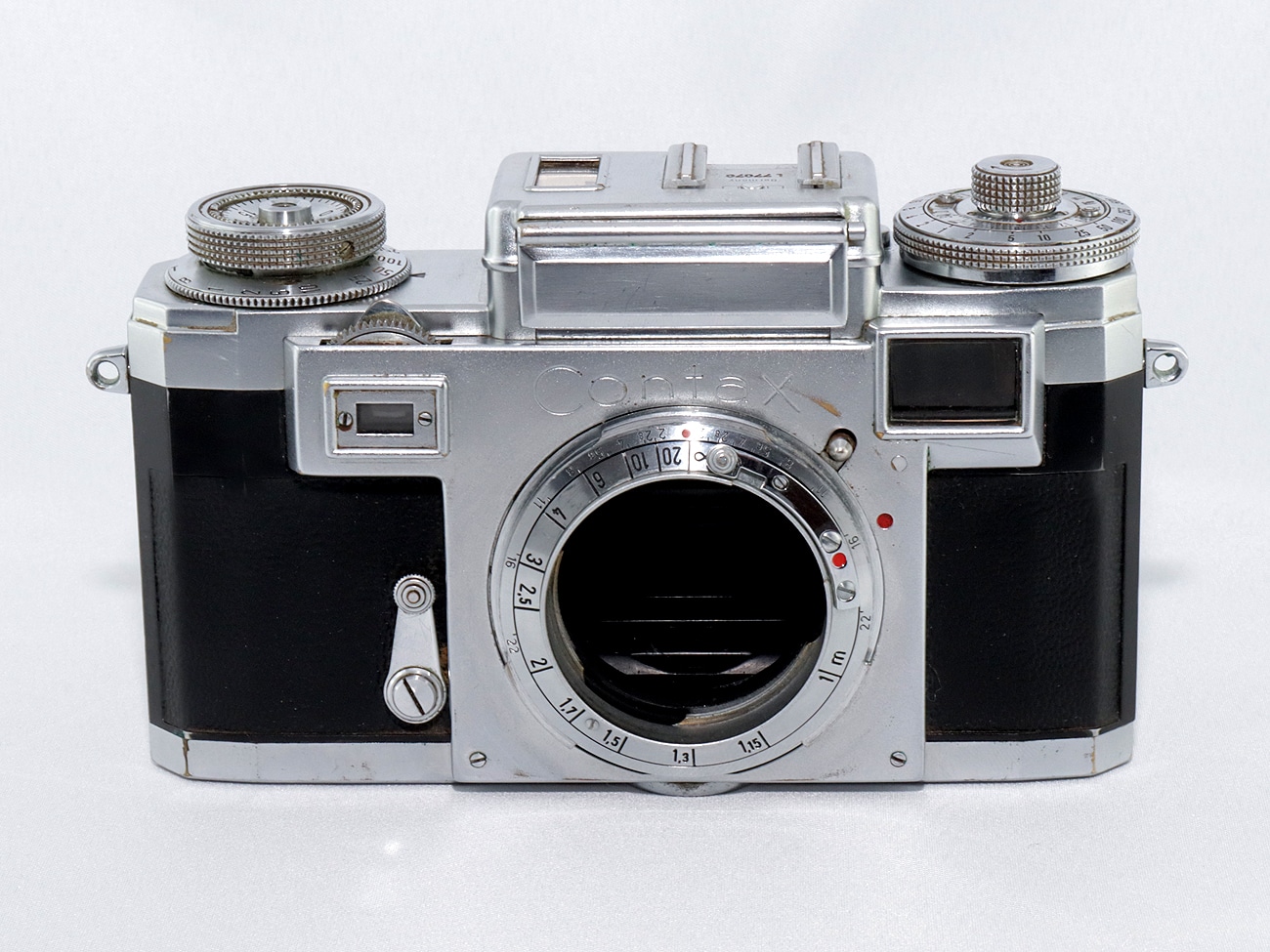 Filmeinlegen mittels abnehmbare Rückwand; Verwendung von Wechselkassetten möglich. Filmtransport: Aufzugknopf für Filmtransport und Verschlussaufzug. Contax-Objektiv-Wechselbajonett (Innenbajonett und Außenbajonett). Entfernungseinstellung bei Benutzung des Innenbajonetts (Standardobjektive) durch Einstellrädchen im Griffbereich des rechten Zeigefingers.