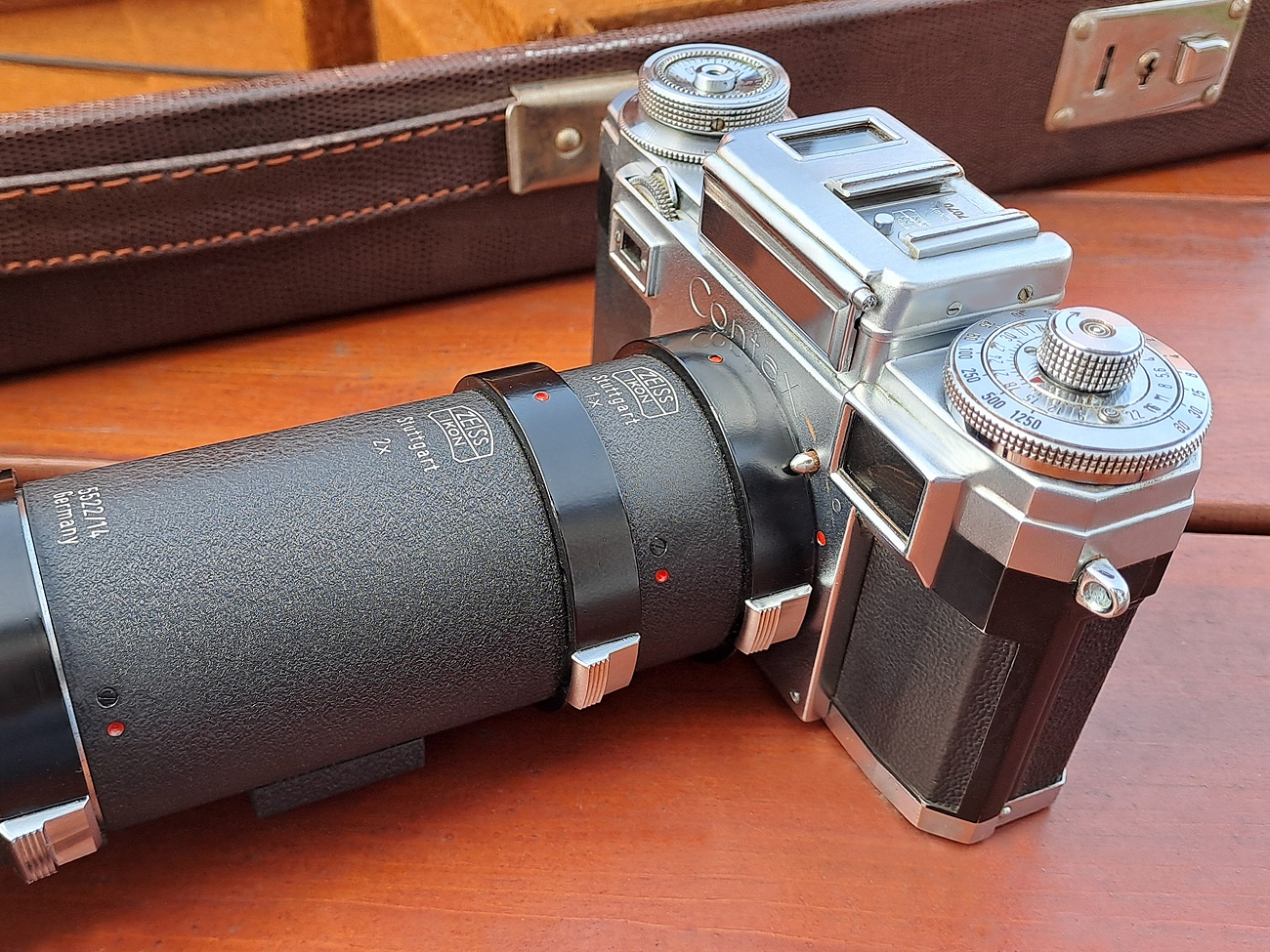 Messsucherkamera für den Kleinbildfilm 135 (Aufnahmeformat 24 x 36 mm), hergestellt von 1951 bis 1962. Mechanischer Schlitzverschluss vertikal ablaufend (T, B, 1 bis 1/1.250 Sekunde). Die Kamera besitzt einen eingebauten, jedoch nicht mit Zeit und Blende gekuppelten Belichtungsmesser (Integralmessung). Hier angesetzt an das heute sehr seltene Zeiss Ikon Reise-Reproduktionsgerät.
