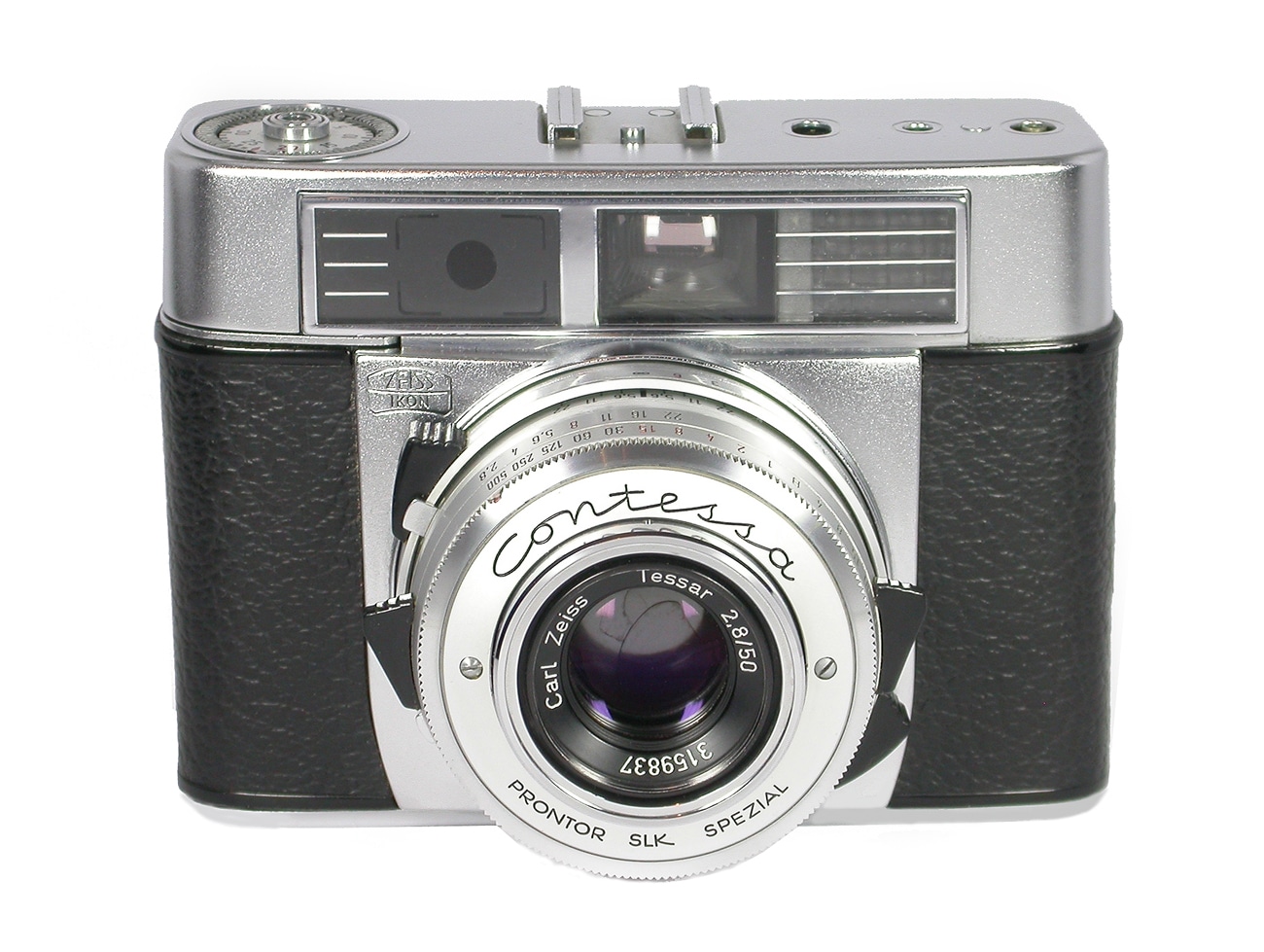 Messsucherkamera für den Kleinbildfilm 135 (Aufnahmeformat 24 x 36 mm) mit eingebautem, gekuppeltem Belichtungsmesser und mit gekuppeltem Entfernungsmesser, der im Sucher beobachtet werden kann, gebaut von 1960 bis 1964. Objektiv: Carl Zeiss Tessar 1:2,8/50 mm. Verschluss: Prontor SLK Spezial. Der Belichtungsmesser ist auf dem Gehäuse und im Sucher zu kontrollieren (Einstellbereich 12 bis 33 DIN). Objektiv in Gesamtverstellung, Leuchtrahmensucher, Schnellschalthebel, Rückspulkurbel im Boden, Selbstauslöser. Kontakt für kabellosen Ikoblitz 5, Blitzvollsynchronisation.