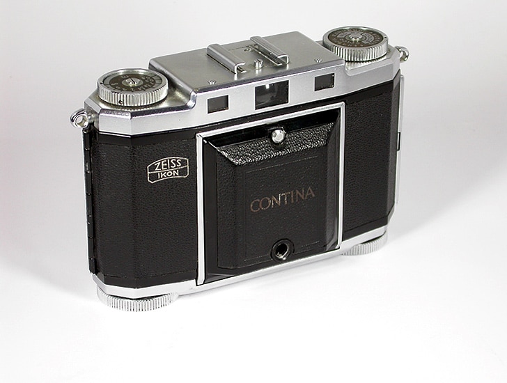 Sofort nach der deutschen Währungsreform 1948 erzielte die Zeiss Ikon AG in Stuttgart große Verkaufserfolge mit der neuentwickelten Kleinbild-Faltkamera Ikonta. Als die Kamera dann noch einen Entfernungsmesser erhielt, wurde sie zur Contina II. Der Entfernungsmesser ist nicht mit dem Objektiv gekuppelt und nicht in den Sucher eingespiegelt. Die Formgebung der Contina II, der Filmtransport mit Auslösesperre und das Bildzählwerk entsprechen der eleganten und teureren Contessa, die von 1950 bis 1955 auf dem Markt war. Die Contina II wurde von 1952 bis 1955 gebaut. Es gab sie mit zwei Objektivvarianten: dem Novar-Anastigmat 1:3,5/45 mm (an diesem Museumsexemplar) und dem Tessar 1:2,8/45 mm. Verschluss: Prontor SV (bis 1/300 Sekunde mit Selbstauslöser). Rückspulknopf am Boden.