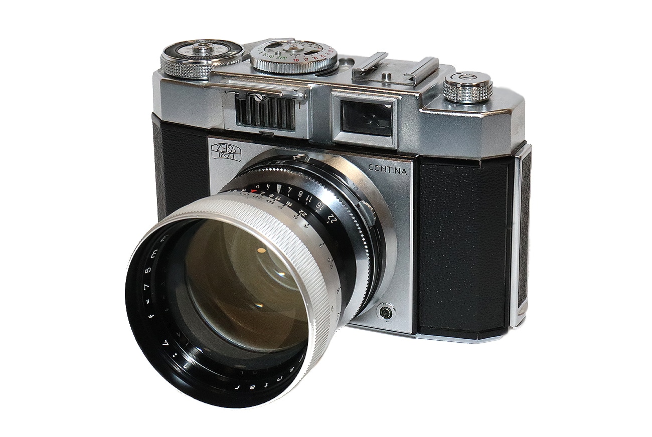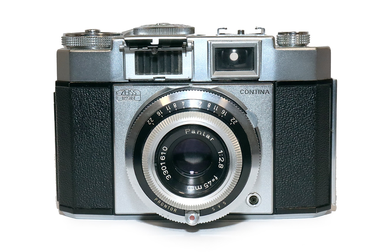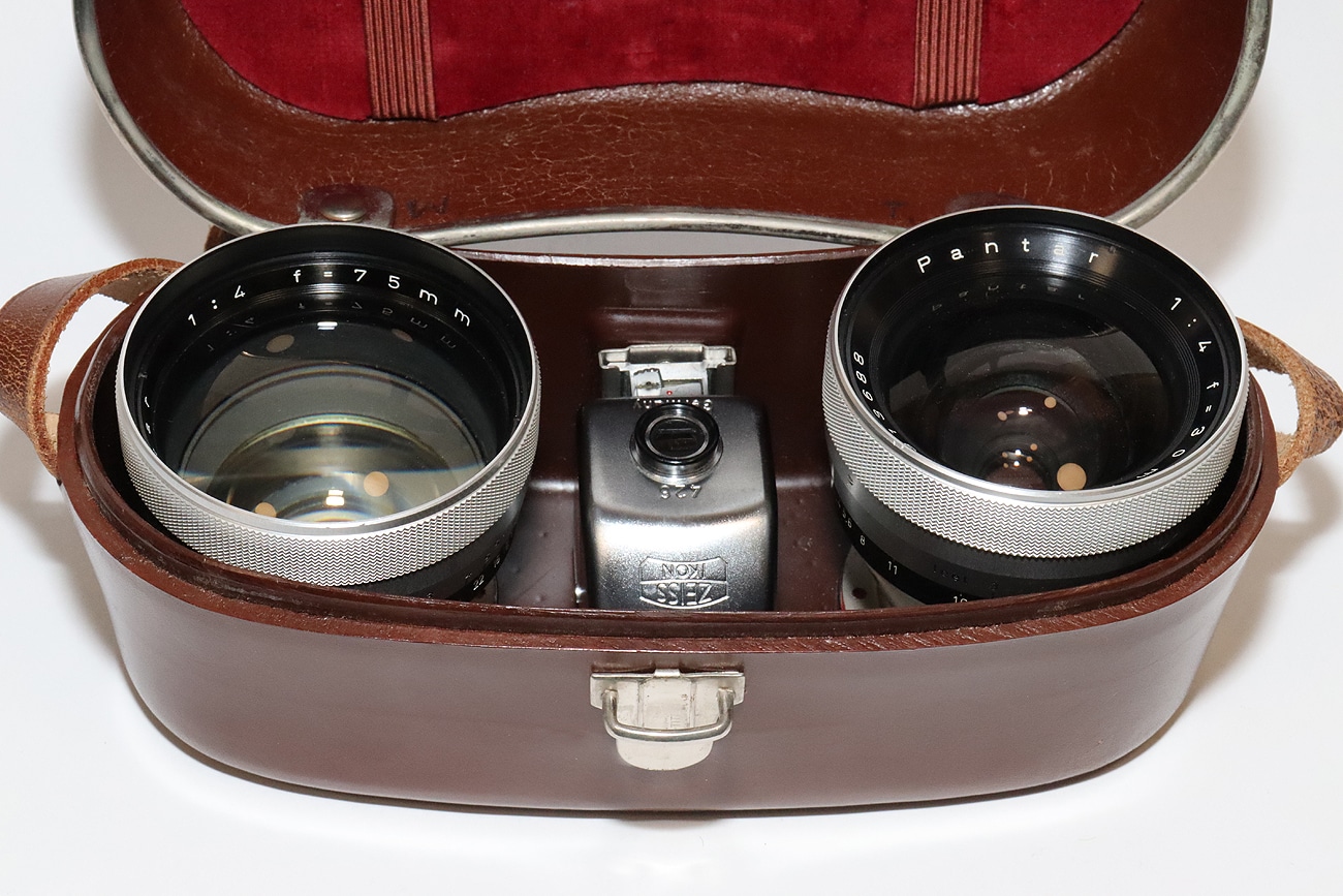Aus der Werksmitteilung von 1956: „Die Zeiss Ikon AG Stuttgart geht mit ihrer neuen Contina III noch einen Schritt weiter. Sie hat diese Kamera mit einem Satzobjektiv, dem Pantar 1:2,8/45 mm, ausgerüstet, bei dem sich das Objektiv-Vorderglied abnehmen und gegen ein Pantar 1:4/30 mm, gegen ein Pantar 1:4/75 mm für Tele-Aufnahmen und gegen ein Steritar-D für Stereo-Aufnahmen auswechseln lässt. Alle Auswechselteile sind mit Bajonettfassung versehen. Für Tele- und Weitwinkelaufnahmen gibt es Spezialsucher, für Stereo-Aufnahmen wird lediglich eine Maske vor den Ausblick des eingebauten Suchers gesteckt. Da bei der langen Brennweite des Pantar 75 mm genaue Entfernungseinstellung erforderlich ist, wurde zusätzlich noch ein aufsteckbarer Tele-Messsucher geschaffen, der mit einem Blick Entfernung und Bildausschnitt anzeigt. Die Entfernungseinstellung wird an den Pantar-Objektiven jeweils direkt eingestellt, so dass eine Umrechnung der Werte des 45-mm-Objektivs in die Werte für die Objektive der anderen Brennweiten entfällt. Zusätzlich wurde ferner noch ein Universalsucher konstruiert, der den Bildausschnitt für 30, 45 und 75 mm Brennweite sowie für Stereo anzeigt.
