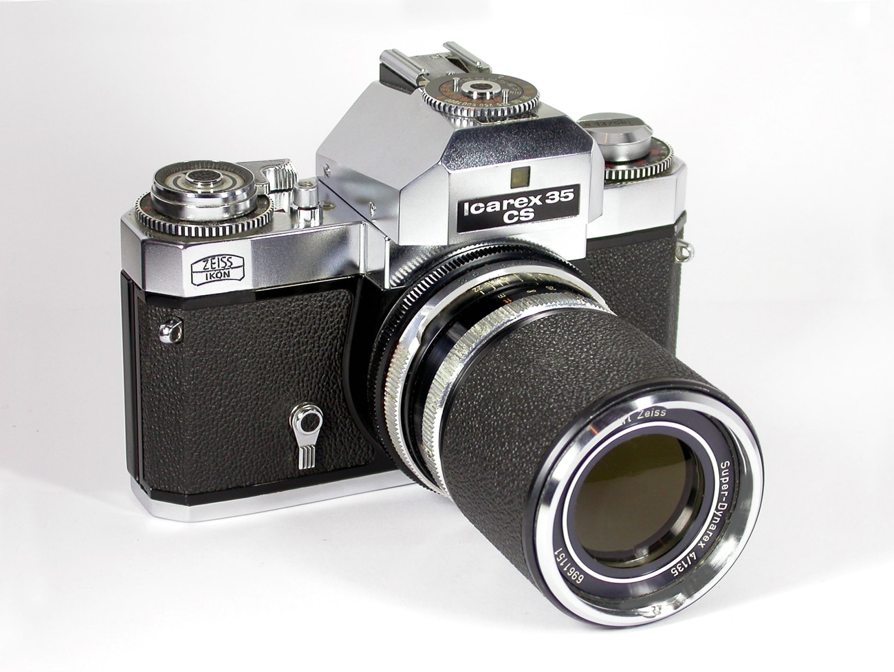 Einäugige Spiegelreflexkamera (SLR) für den Kleinbildfilm 135 (Aufnahmeformat 24 x 36 mm), hergestellt etwa 1967. Wechselobjektive mit Bajonettverschluss, wechselbarer Sucher (hier mit CdS-Belichtungsmesser), Schlitzverschluss, stabiles Gehäuse – ein solides, beeindruckendes Stück Kamera „Made in West Germany“! Objektiv: hier mit Tele Carl Zeiss Super-Dynarex 1:4/135 mm.