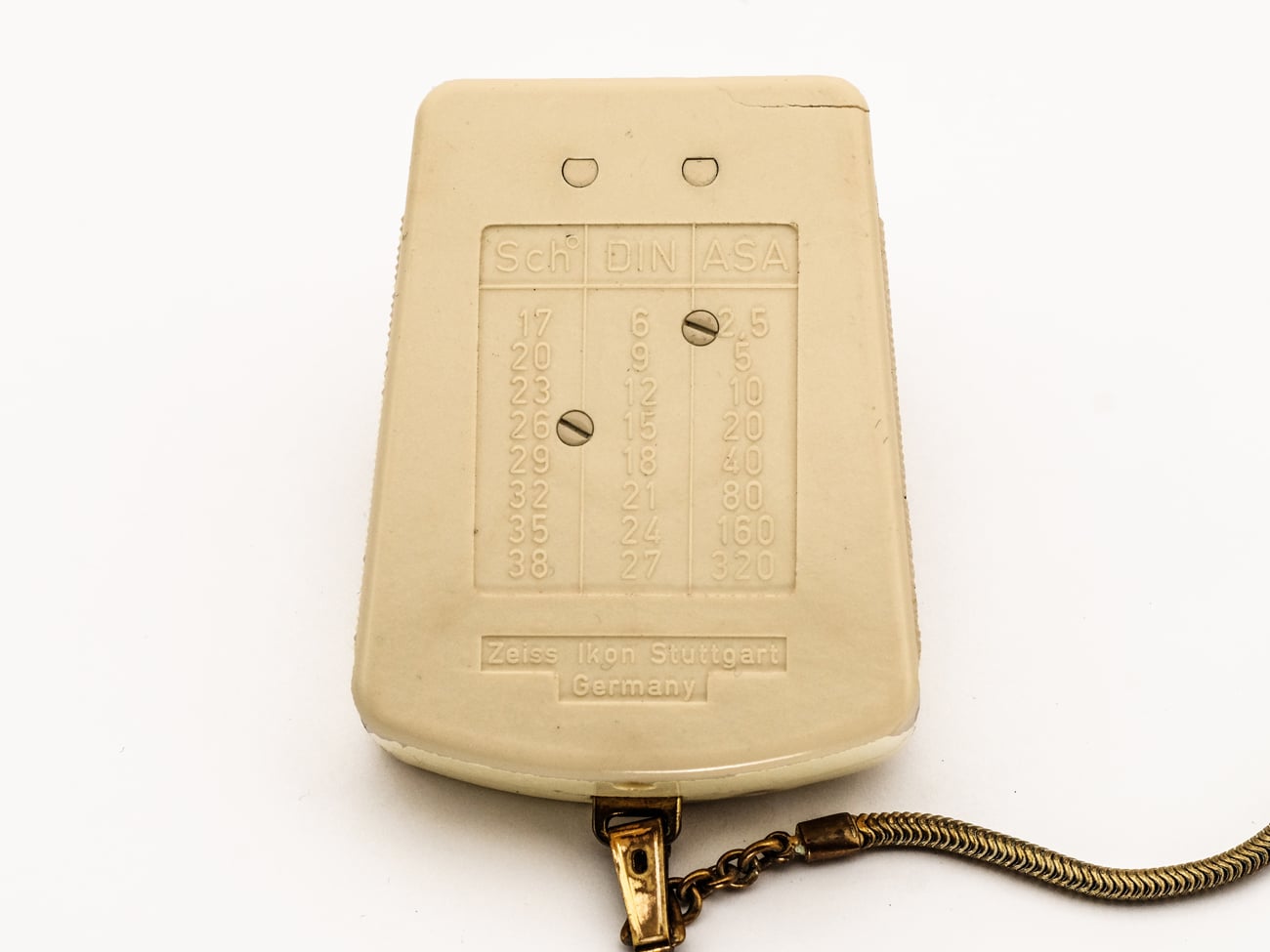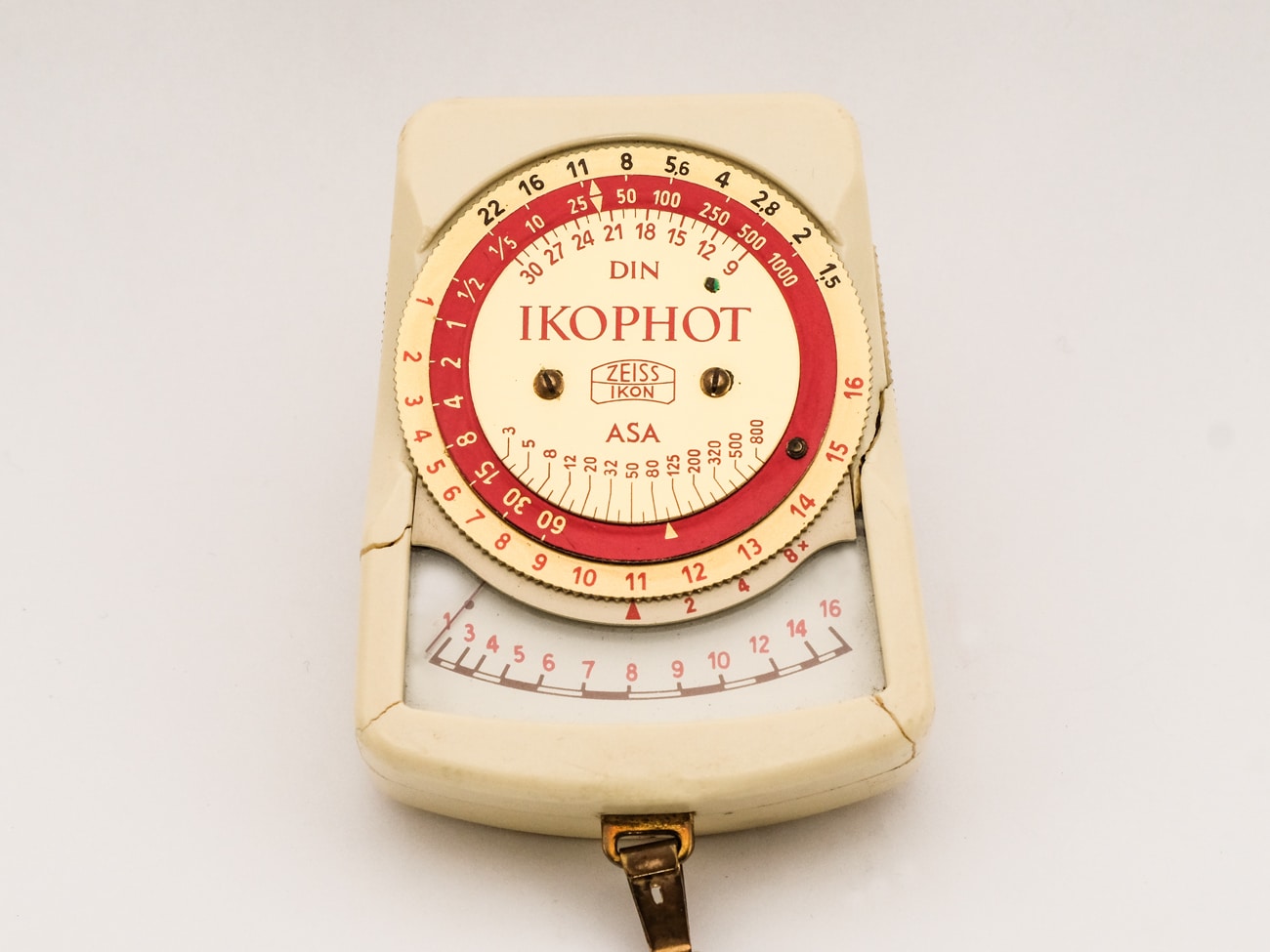 Selenbelichtungsmesser von Zeiss Ikon/Stuttgart ab 1953. Die Selenzelle erzeugt, abhängig von der Helligkeit, einen elektrischen Strom, mit dem das Zeigerinstrument angesteuert werden kann, eine zusätzliche Stromquelle ist nicht erforderlich. Die Teilung der Zeigerskala entspricht nicht den Lichtwerten (EV), um Verwirrungen zu vermeiden wurde bei dem Nachfolgemodell Zeiss Ikon Ikophot Rapid das Skalenprinzip durch ein System mit Nachführzeiger ersetzt. Für die Lichtmessung kann eine teildurchlässige Scheibe vor das Lichteintrittsfenster gesteckt werden. Die Skalenwerte: Zeiten von 1/1.000 Sekunde bis 60 Sekunden, Blenden von 1,5-22, Empfindlichkeiten ASA 3-800/DIN 9-30.