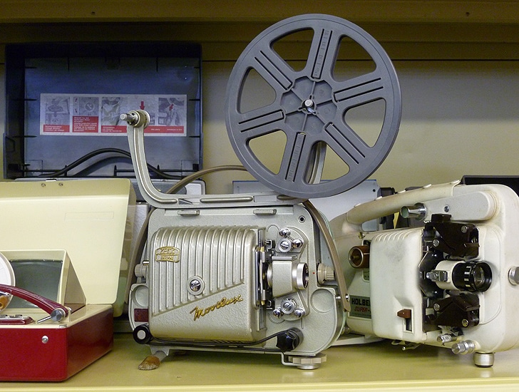 Schmalfilmprojektor für Normal-8-Film von Zeiss Ikon (1958) in der Größe einer Damenhandtasche, aber mit Gusseisengehäuse. Ein auf der Gehäuseoberseite zu befestigender Tonkoppler synchronisierte den Film mit einem separaten Tonbandgerät und ermöglichte so eine Tonprojektion. Die Projektionsgeschwindigkeit beträgt konstant 16 Bilder/Sekunde. Der Filmvorschub erfolgt über zwei jeweils einreihige Zahnrollen, das Filmeinfädeln muss manuell vorgenommen werden. Der Hauptantrieb einschließlich Rückspulung erfolgt elektrisch mit Spannungen von 110 bis 240 Volt, die Lampe hat eine Leistung von 50 Watt bei 8 Volt. Verschiedene Objektive standen zur Verfügung: 1:1,2/18 mm oder ein Zoom 1:1,4/15-25 mm. Die maximale Spulengröße erlaubt Filmlängen von 120 Meter. Zur Projektion wurde der hier nach unten geklappte Metallarm mit den beiden Spulenhalterungen nach oben geschwenkt, mit dem Rändelrad befestigt und schon konnte es losgehen.
