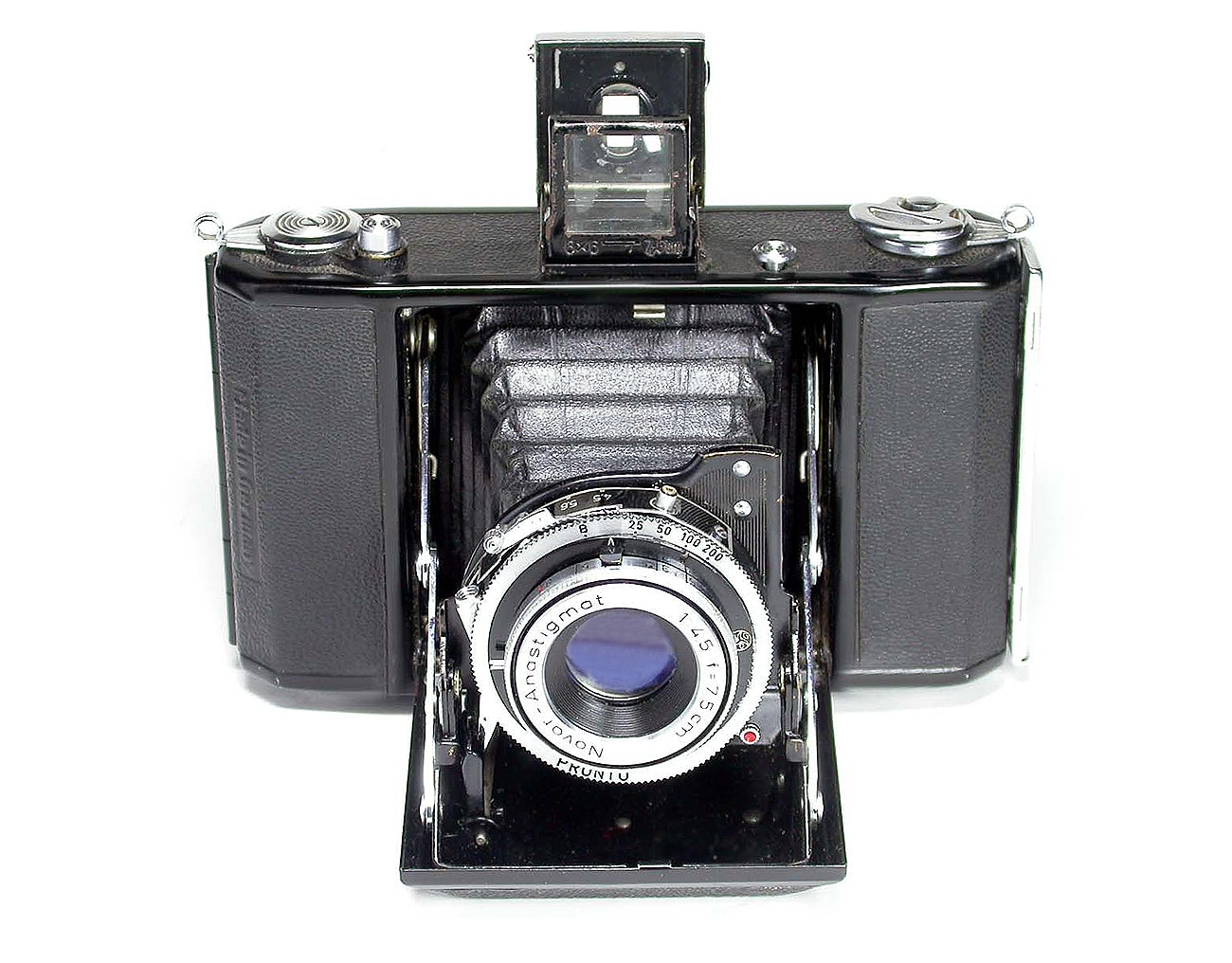 Klapp-/Spreizenkamera für den Rollfilm 120 (Aufnahmeformat 6 x 6 cm), hergestellt von 1938 bis 1951. Objektiv: Novar-Anastigmat 1:4,5/7,5 cm; Klappsucher; Verschluss: bei diesem Exemplar Pronto (ungewöhnlich!) mit B und 1/25 bis 1/200 Sekunde; Gehäuseauslöser, Selbstauslöser, Stativgewinde. Objektivfassung und Blitzanschluss sprechen beim Museumsexemplar für eine Herstellungszeit nach 1945.