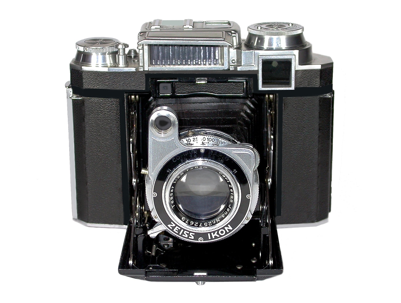 Mittelformat-Messsucherkamera für den Rollfilm 120 (Aufnahmeformat 6 x 6 cm), gebaut von 1937 bis 1957. Diese Super Ikonta war die erste Rollfilmkamera mit eingebautem Belichtungsmesser (12 bis 30 DIN; ungekuppelt). Das große (15 x 11 cm) und schwere Gerät hat üblicherweise ein Zeiss Jena Tessar 1:2,8/8 cm in Compur-Verschluss (hier in einem Compur Rapid), ein automatisches Zählwerk für die belichteten Aufnahmen und bereits eine Sperre gegen Doppelbelichtungen. Das Kameragehäuse ist aus Leichtmetallguss. Der Messsucher nach dem Drehkeilprinzip – eine von Zeiss Ikon entwickelte, äußerst genaue Messeinrichtung – ist mit dem Objektiv gekuppelt. Verschlusszeiten: B und 1 bis 1/400 Sekunde.